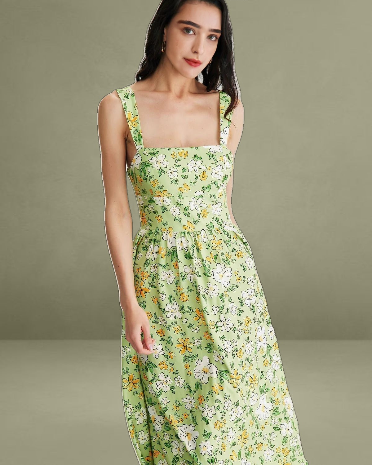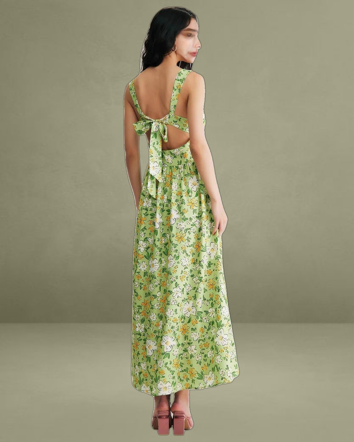 Effortlessly elegant, this green floral backless maxi dress features a stunning floral print and a flowing silhouette. The backless design adds a touch of allure, while the soft, breathable fabric ensures all-day comfort.