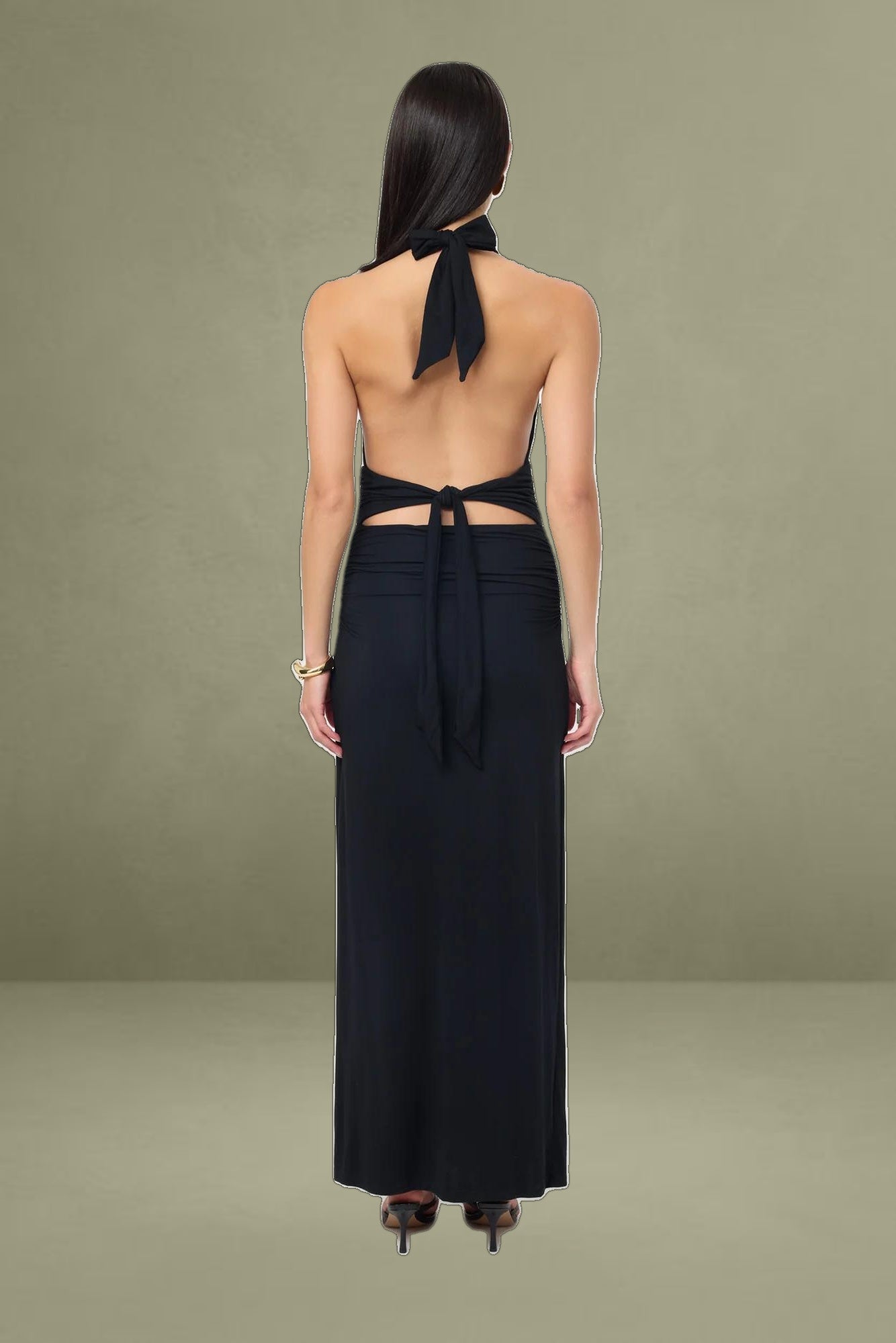 Embrace the allure of the Leni Maxi Dress in Black. Crafted from our much loved Rayon Jersey Fabrication features a captivating halter neckline and a flowing maxi silhouette, creating a graceful and feminine look. The dress is designed with a flattering fit around the waist and ties in the back, accentuating the silhouette.