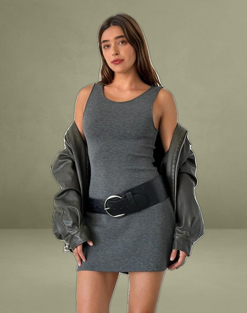 Add to your basics collection with the new Onami dress. Featuring a sleeveless, bodycon fit and a mini length hem with a crew neckline in grey.
