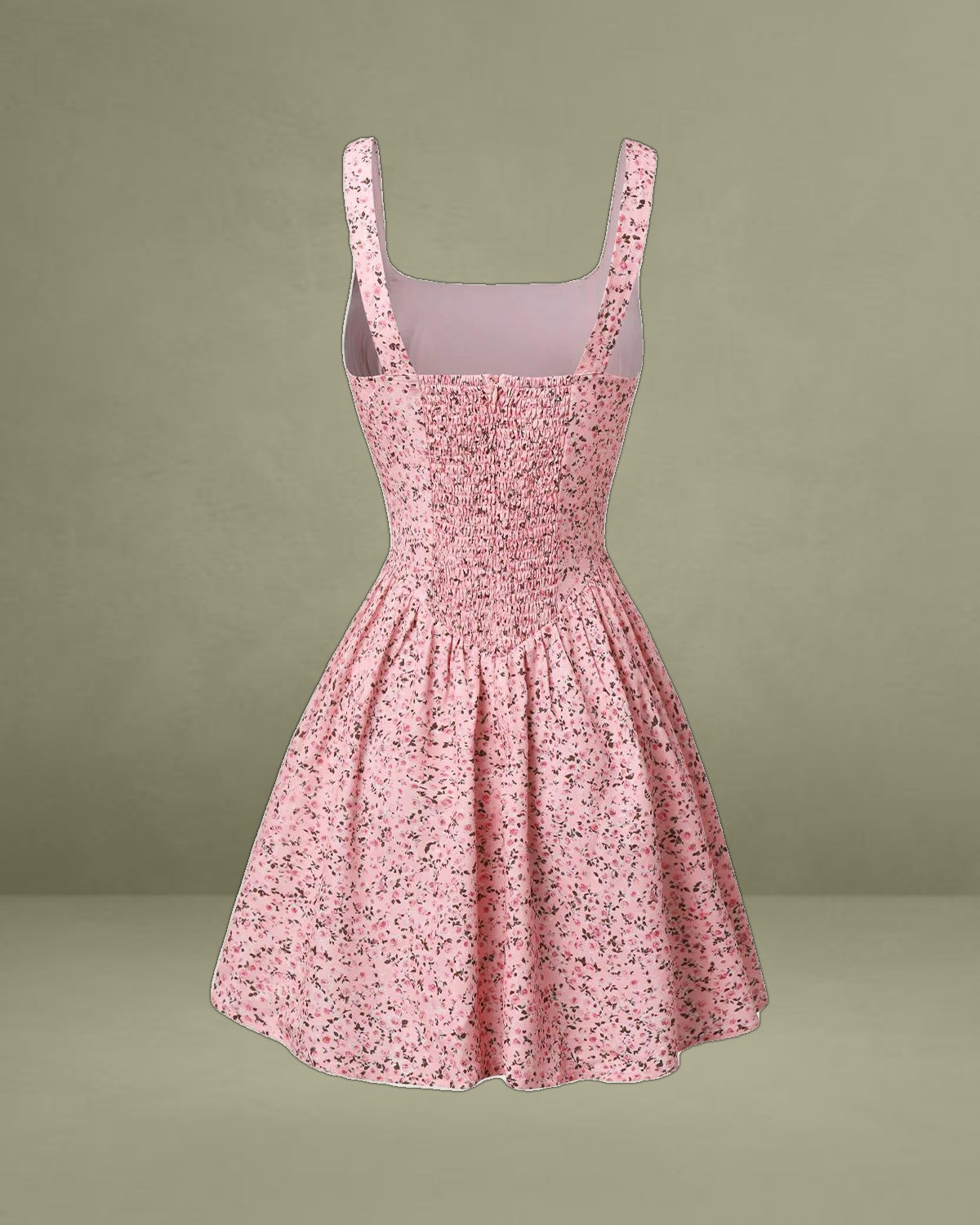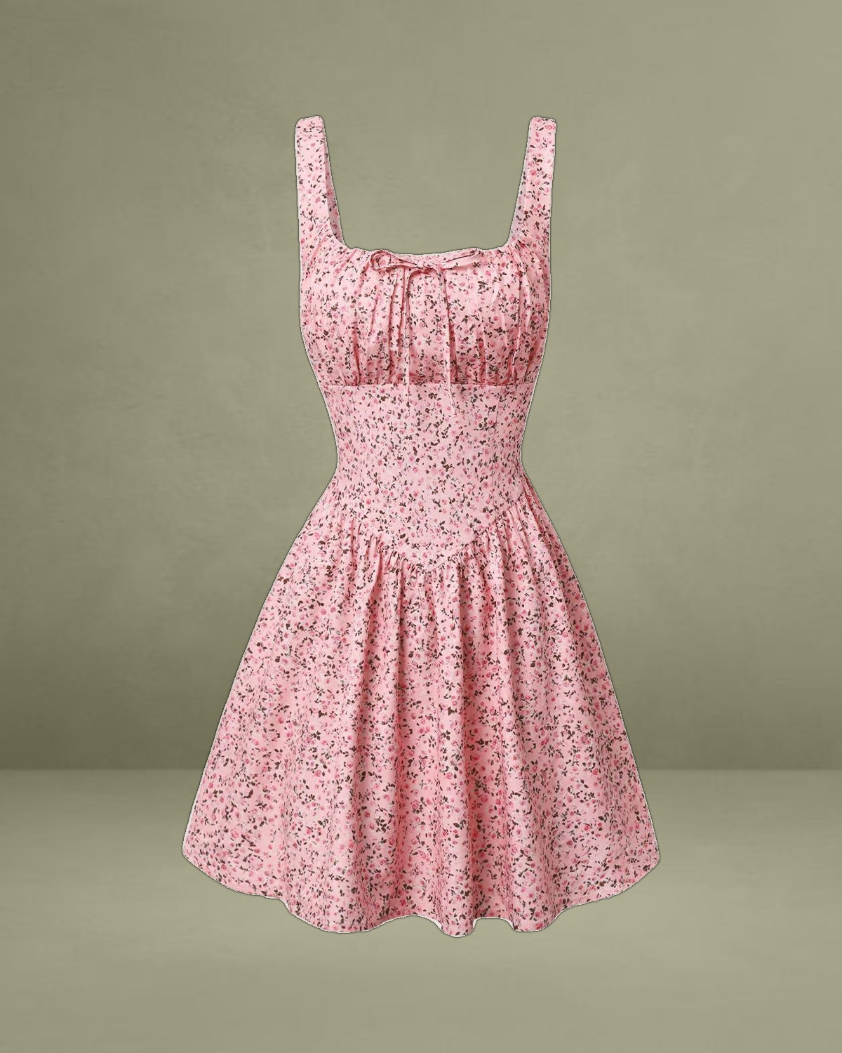 Featuring a delicate floral print, this dress is designed with a figure-enhancing corset bodice that accentuates the waist, while ruched detailing adds texture and a flattering fit. The slip-style silhouette keeps it effortlessly chic and comfortable, making it perfect for date nights, garden parties, or special occasions.