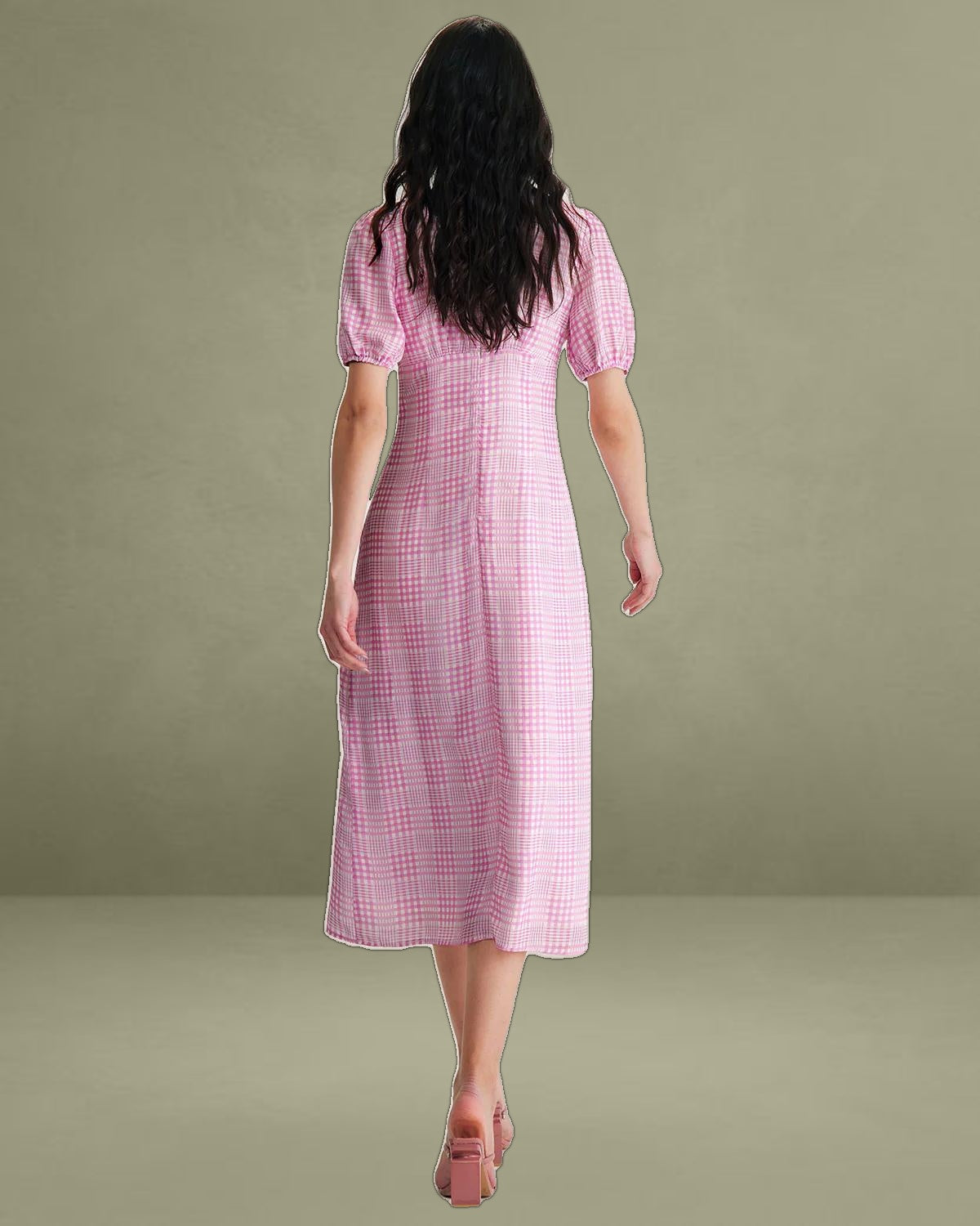 Elevate your style with this chic pink plaid midi dress. Featuring a flattering V-neckline and a comfortable fit-and-flare silhouette, it offers a perfect blend of sophistication and casual charm. The subtle plaid pattern adds a timeless touch, making it ideal for both work and casual outings.