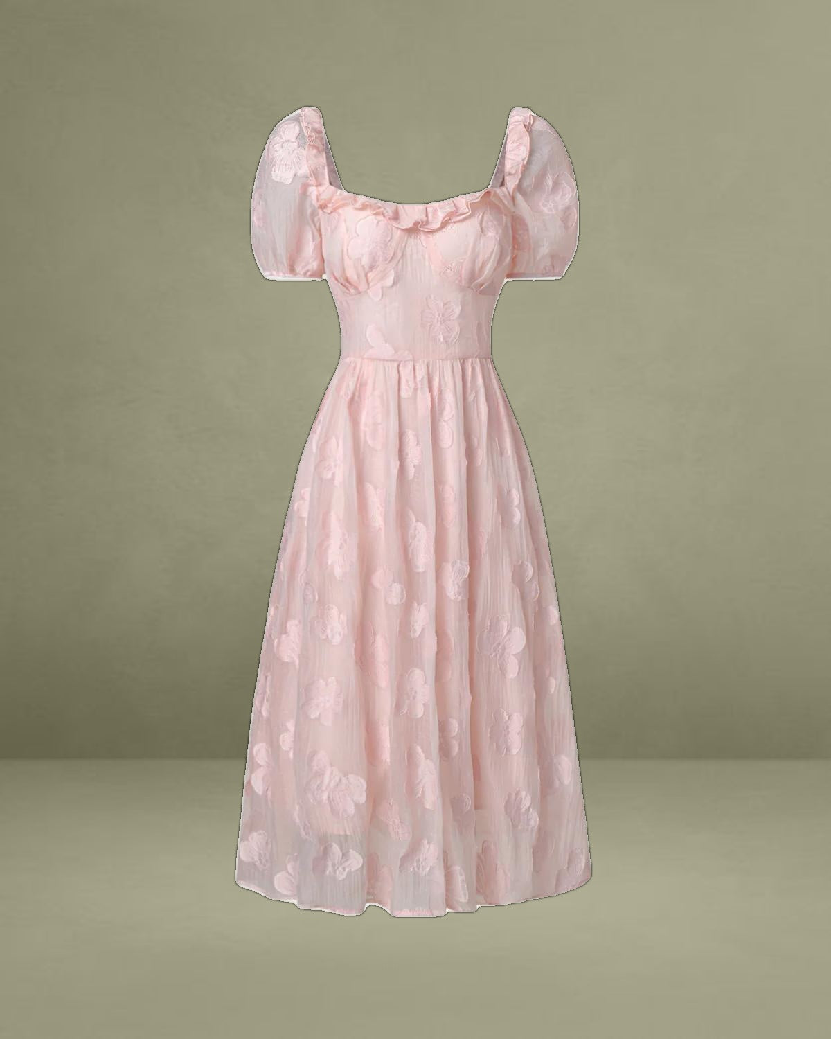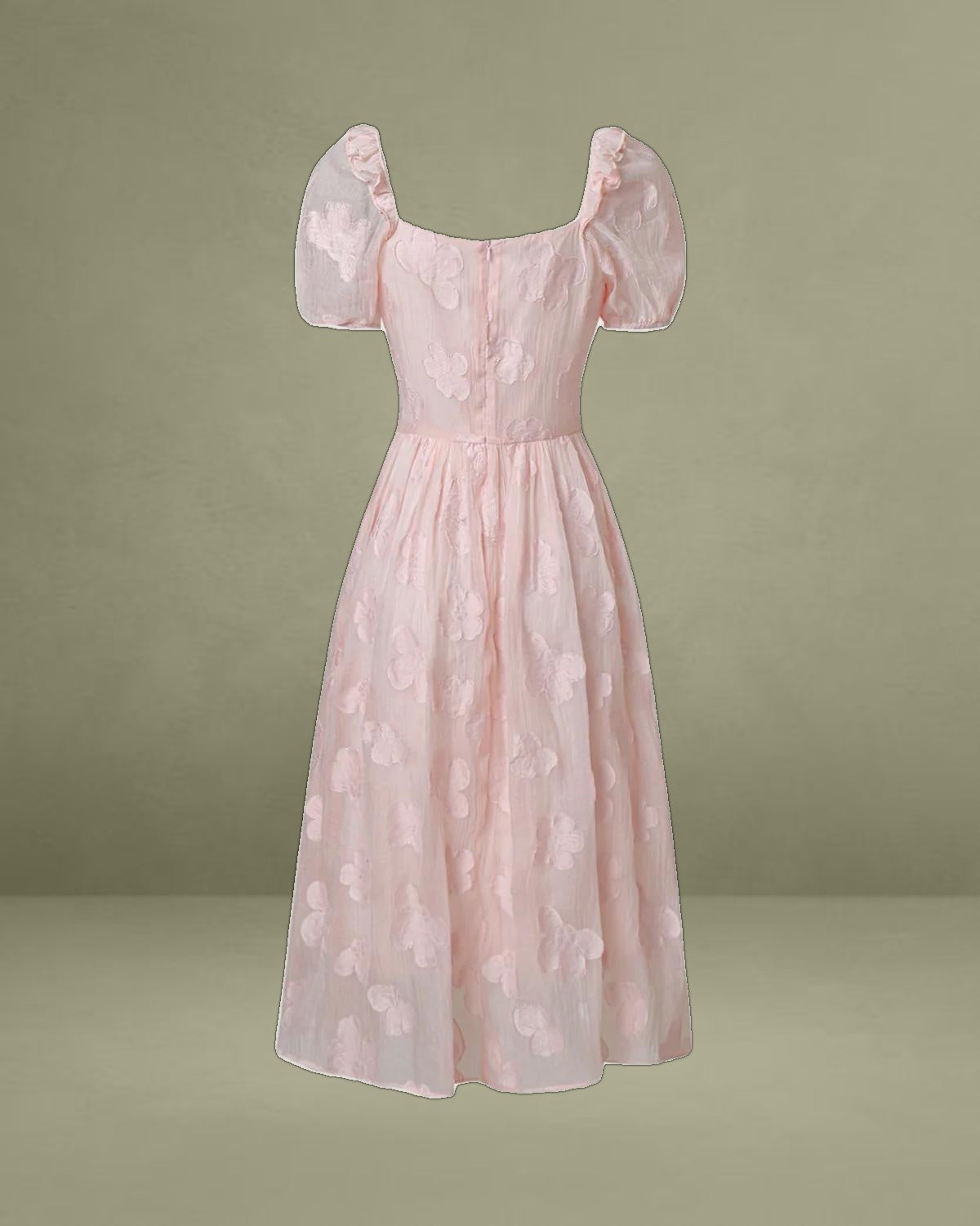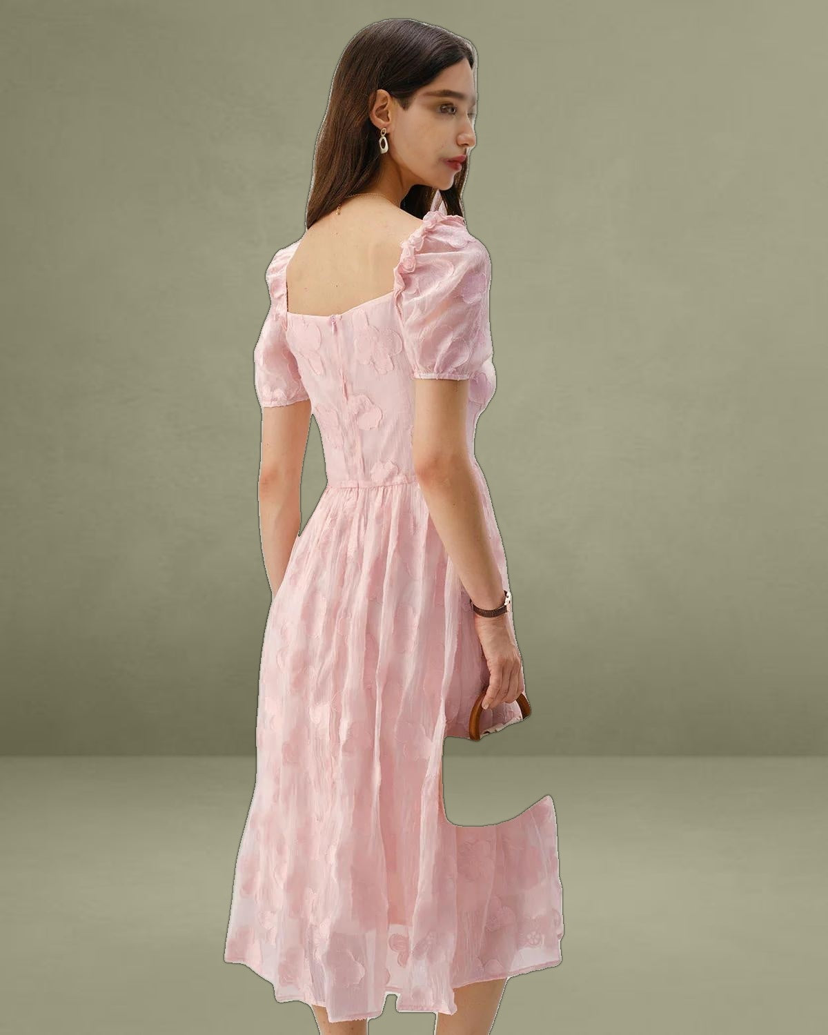 Featuring a flattering square neckline, soft puffed sleeves, and a flowing midi-length skirt, this dress creates a graceful, feminine silhouette. Crafted from lightweight, breathable fabric, it's perfect for everything from brunch dates to garden parties.