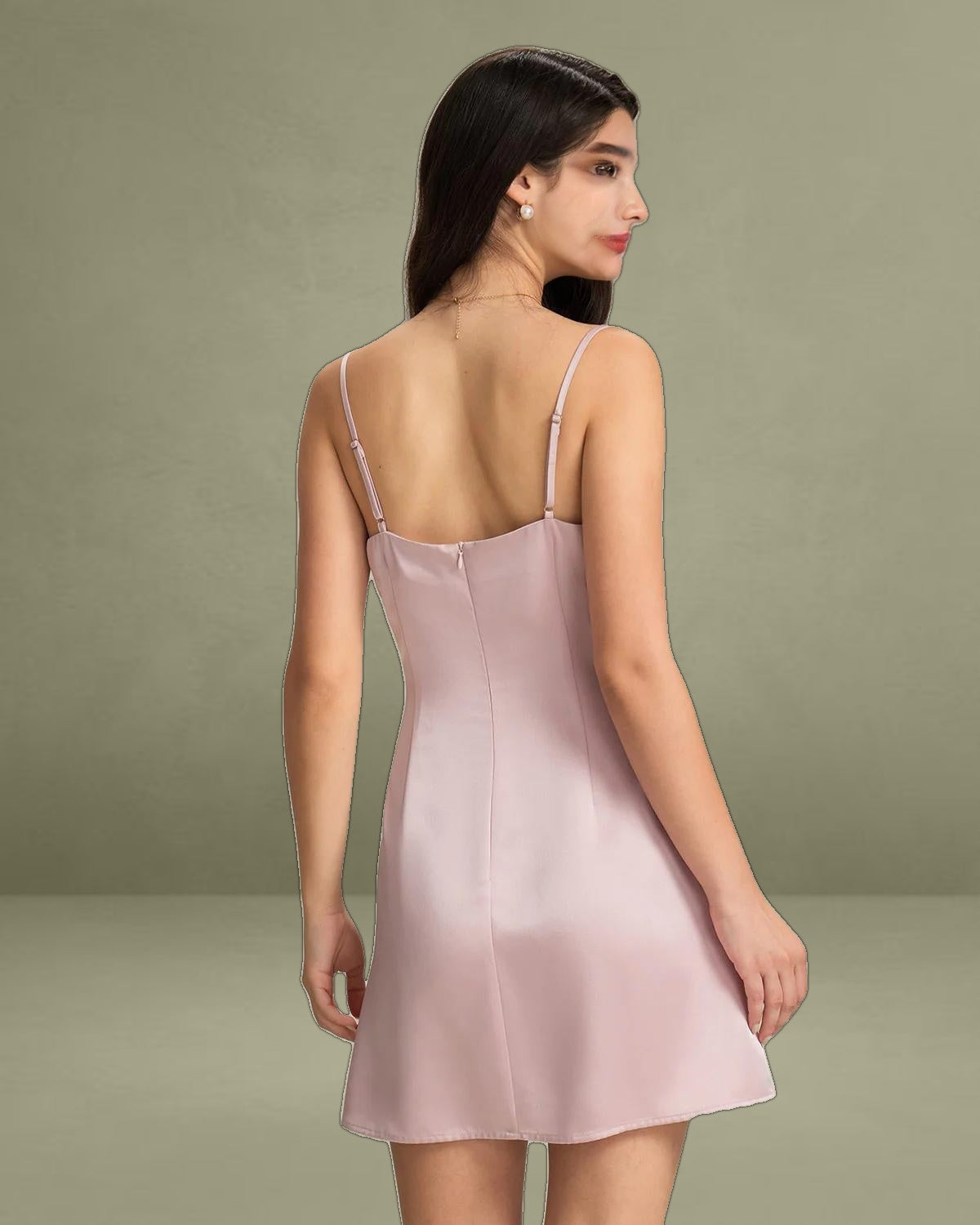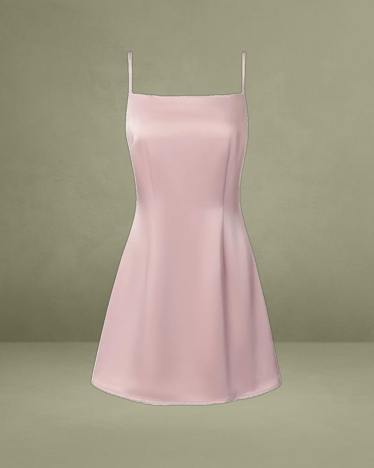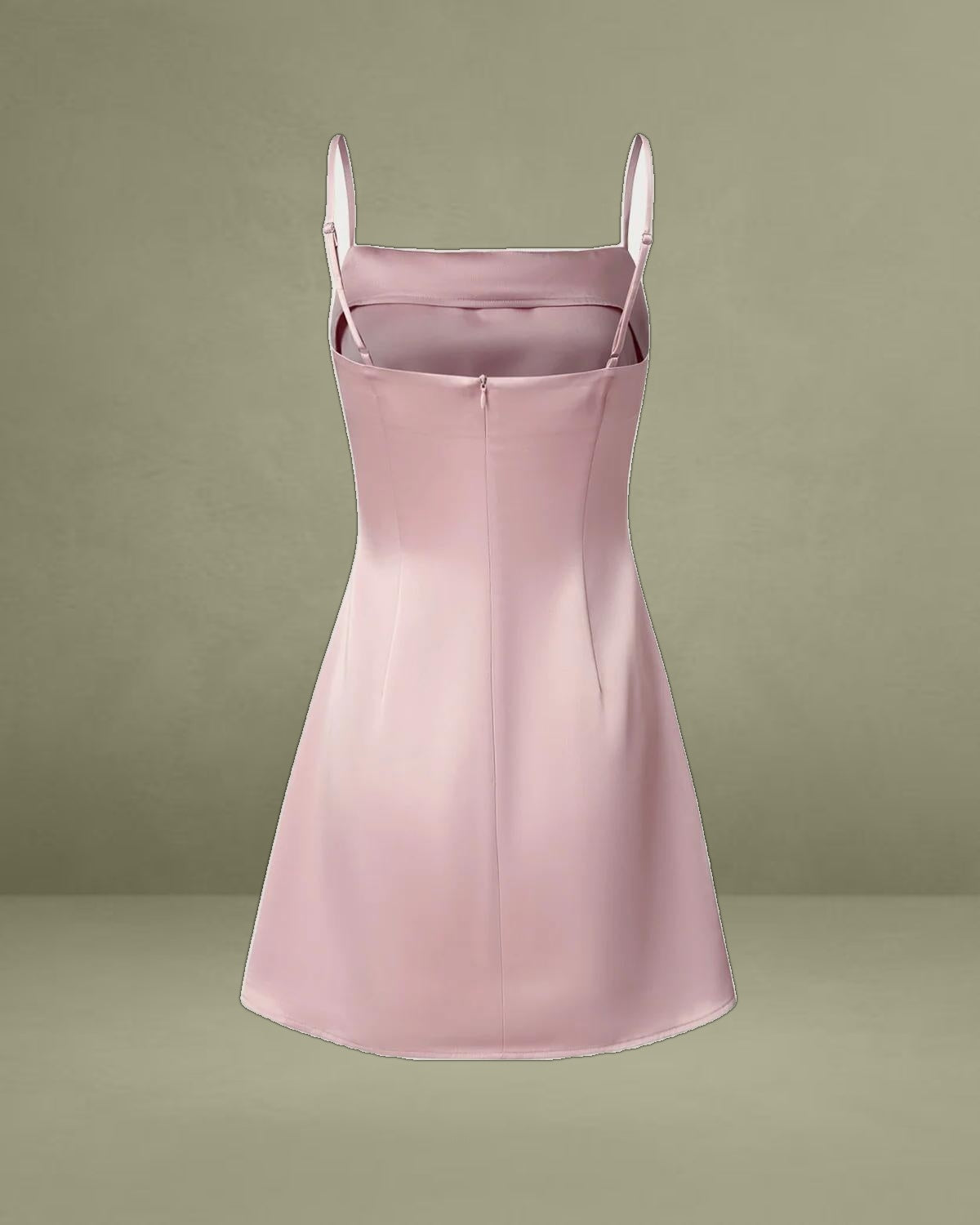 Designed with a structured square neckline, this mini dress beautifully frames the décolletage while its smooth satin fabric adds a luxurious sheen. The flattering fit enhances your silhouette, making it perfect for parties, nights out, or special events.