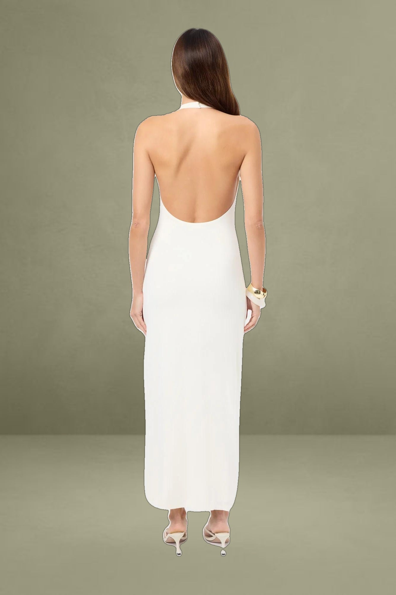 The Polly Maxi Dress is a stunning addition to dress edit. In a Coconut Milk colourway, the luxurious modal jersey fabric offer both comfort and elegance. Featuring a deep v-neckline while the rouched detailing around the waist creates a flattering fit. Pair this dress with strappy heels for a chic and polished look.
