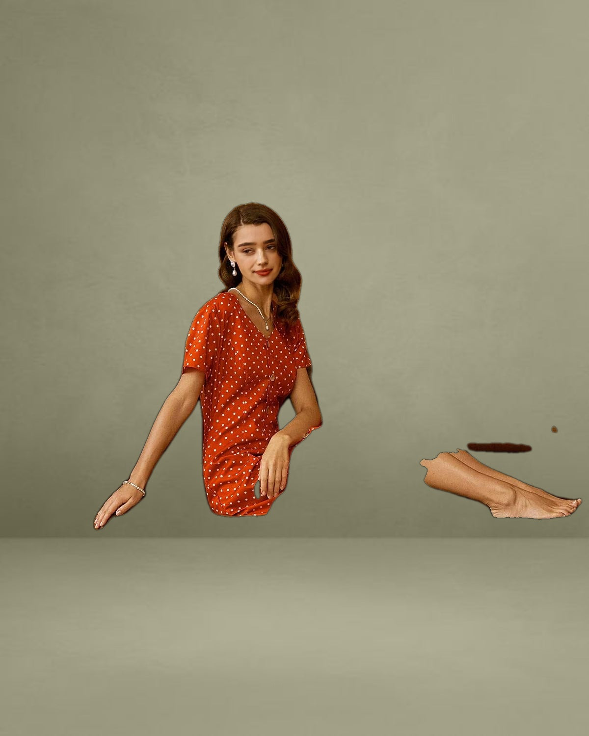 Featuring a flattering midi length, a classic button-down front, and playful white polka dots on a vibrant red background, this dress offers effortless style for any occasion. Its lightweight fabric ensures comfort, while the tailored fit highlights the silhouette beautifully.