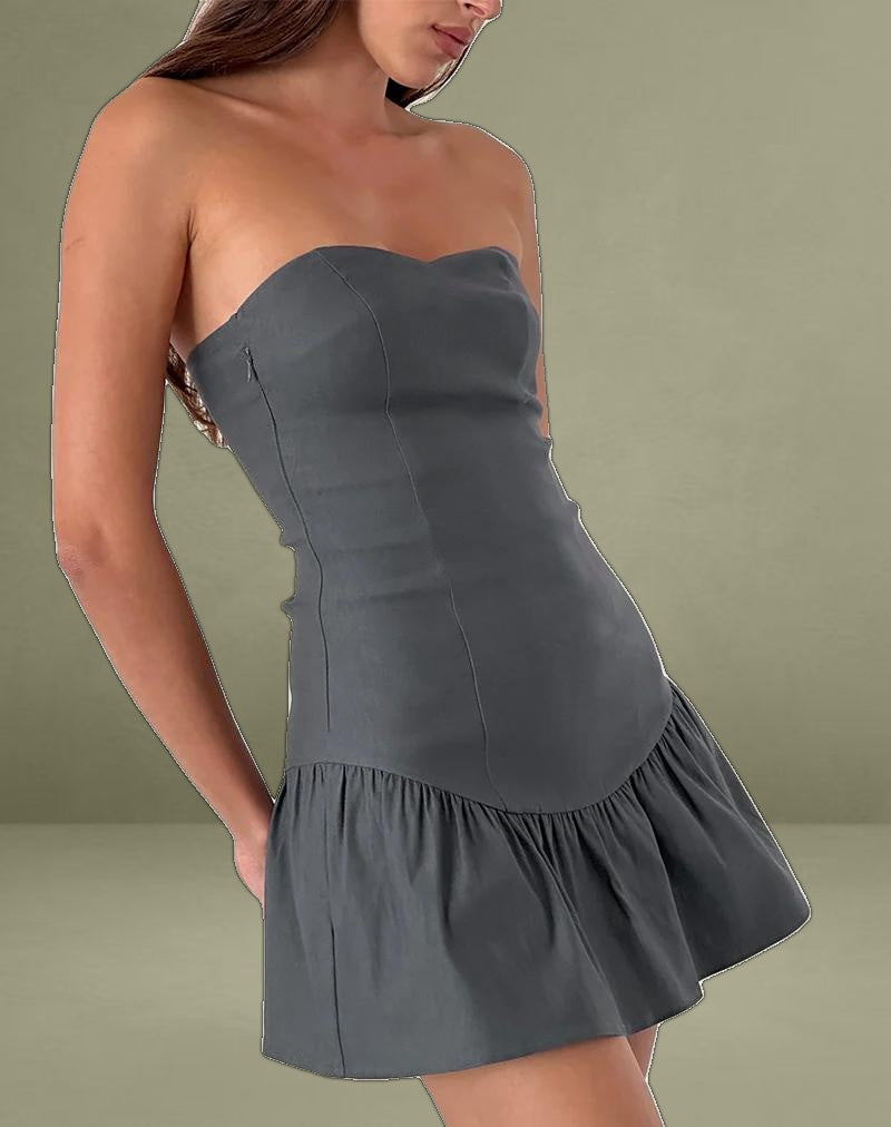 The Sabina dress in charcoal grey stretch tailoring features a drop V waist detailing and a ruched skirt. It offers a sweetheart neckline and contouring seams down the front for a flattering finish. Completed with a concealed side zip for easy wear.