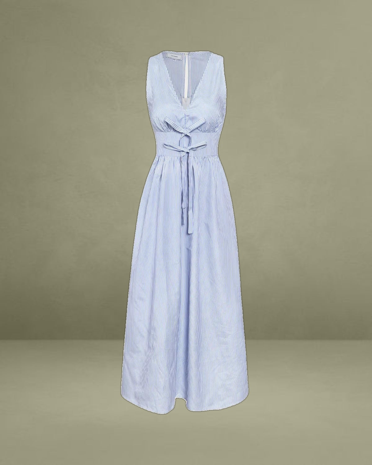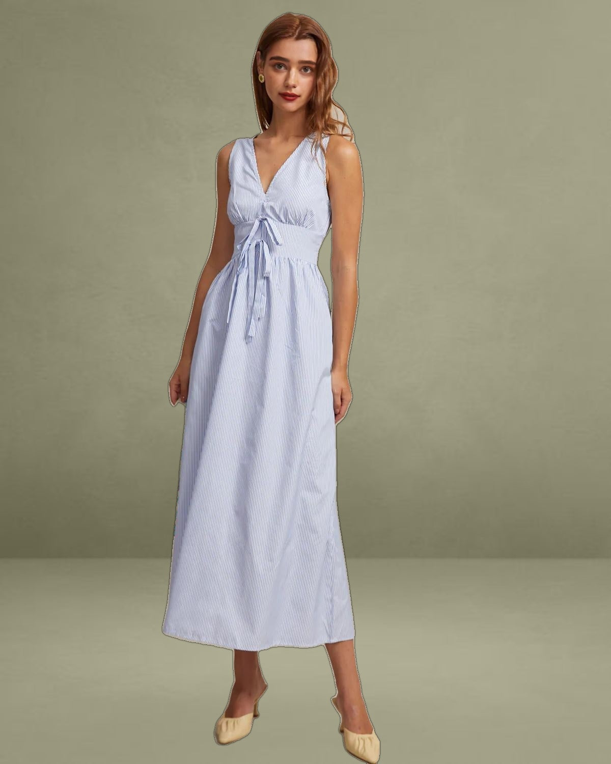 This V Neck Maxi Dress is a perfect choice for any occasion. Its high waisted and slim fit accentuate your curves and make you feel confident and beautiful. The tie front, shirred and striped design adds a feminine touch and makes this dress perfect for any occasion. Whether you're going out on a date or attending a formal event, this dress is sure to turn heads and make you feel fabulous.