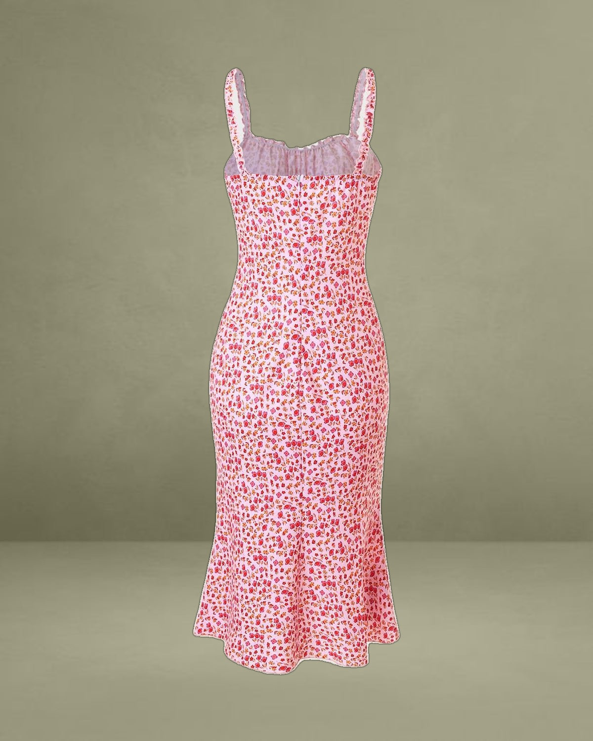 It is the synonym of sexy and gentleness. Pink and floral print makes this dress romantic and attractive. Coupled with bodycon and fishtail design, the female figures are presented well. Plus, frill trim serves as an ornament, making it shinning more.