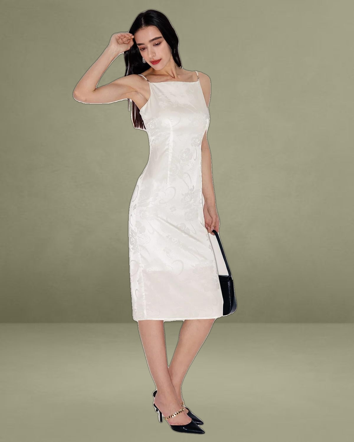 This Slip Midi Dress is made of Polyester and Spandex. Polyester is an artificial fiber that feels soft, looks lustrous, and dries fast.