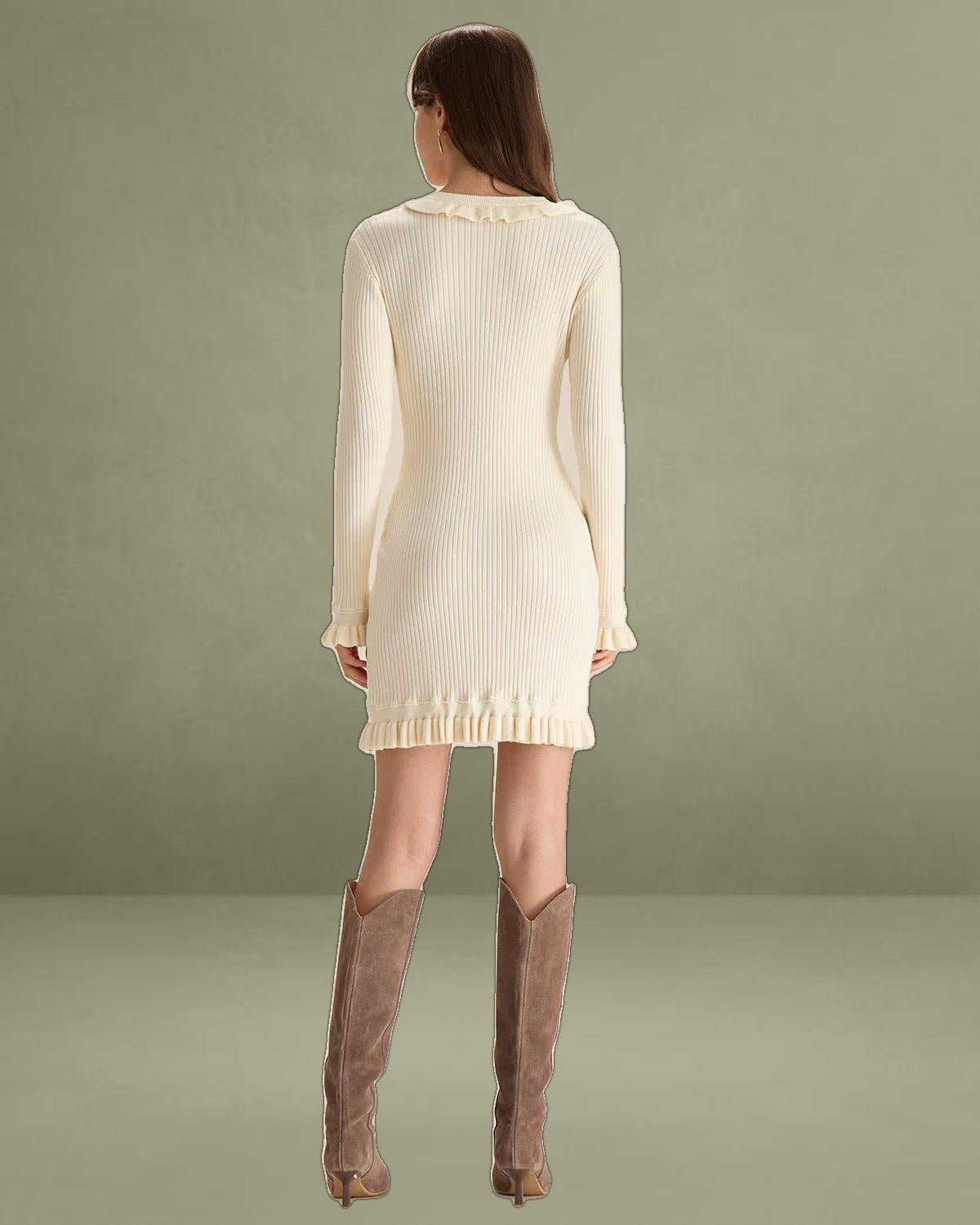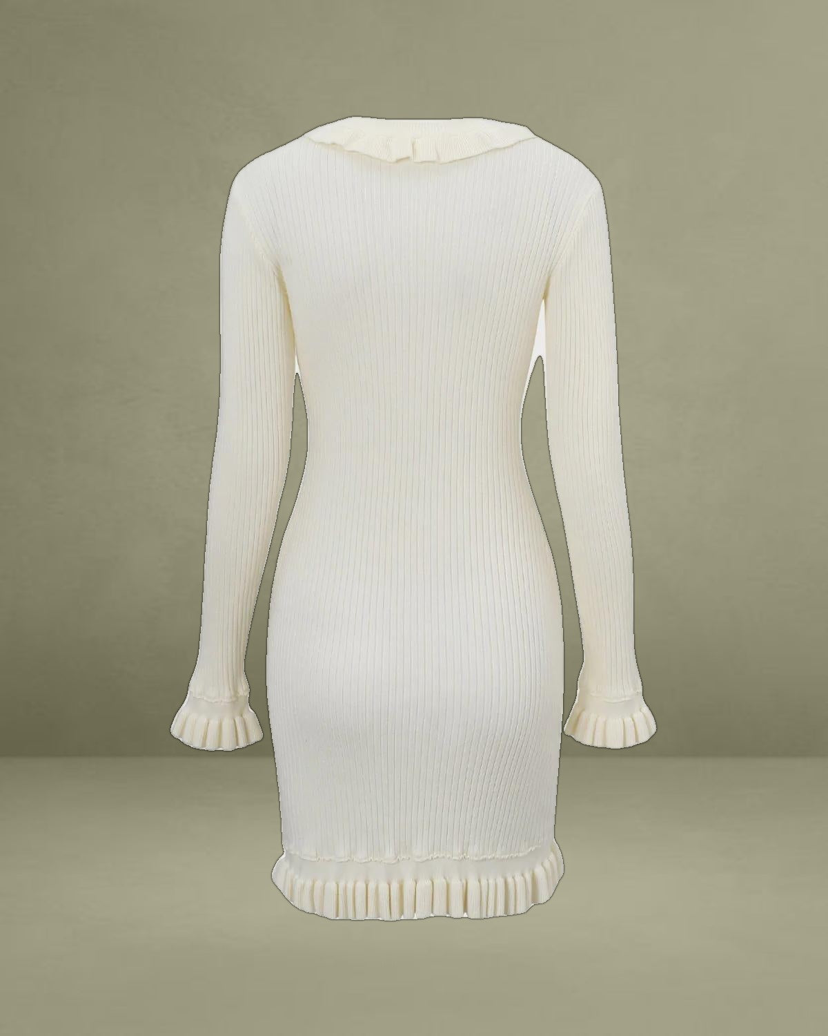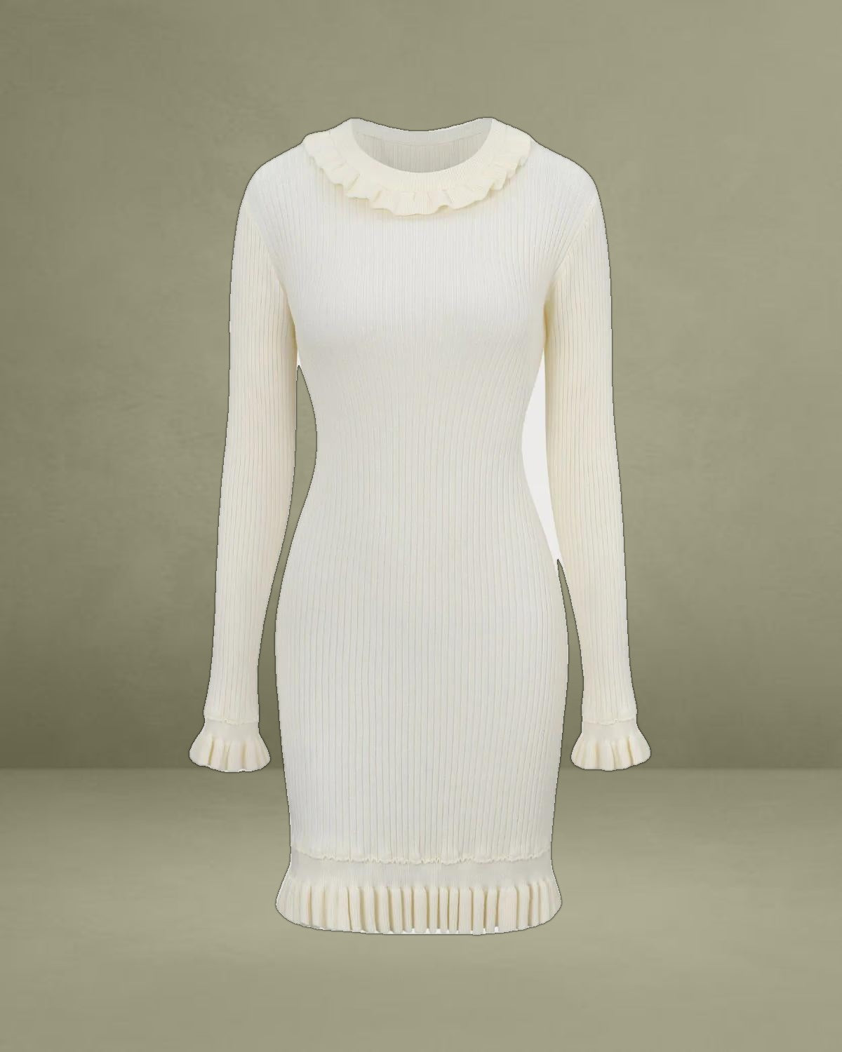 Crafted from a soft, stretchy knit fabric, it hugs your curves for a flattering, bodycon fit. The clean white color exudes timeless elegance, while its mini length adds a touch of playful charm.