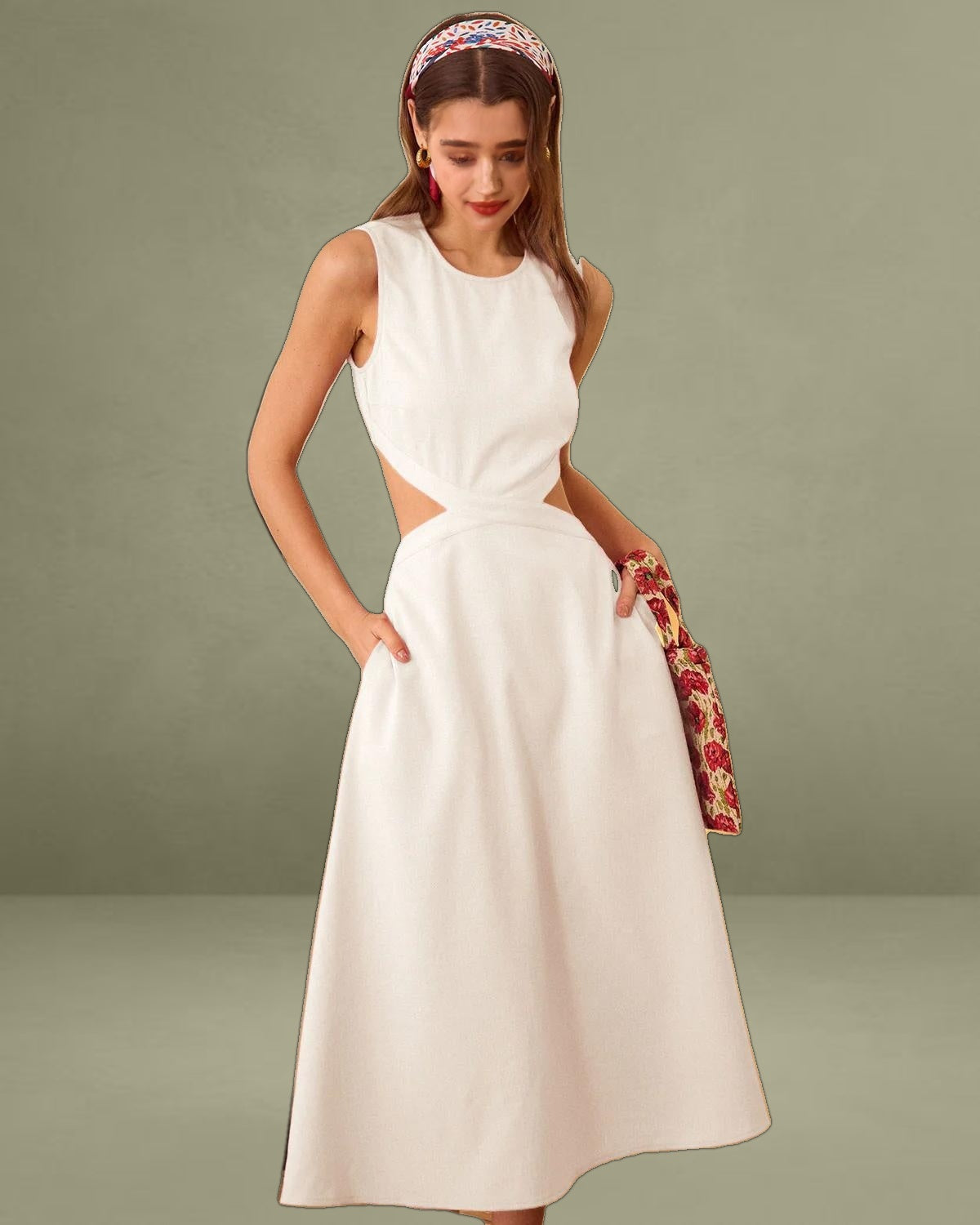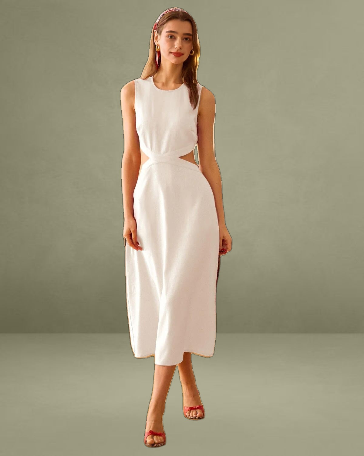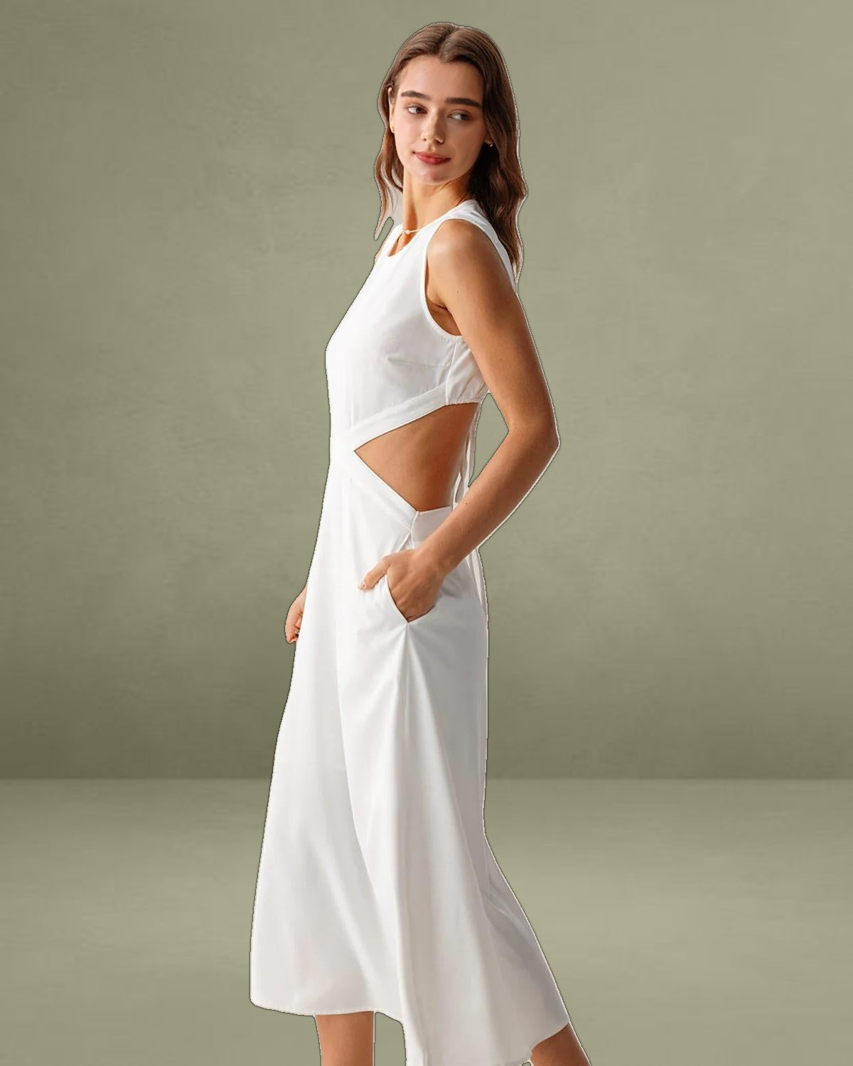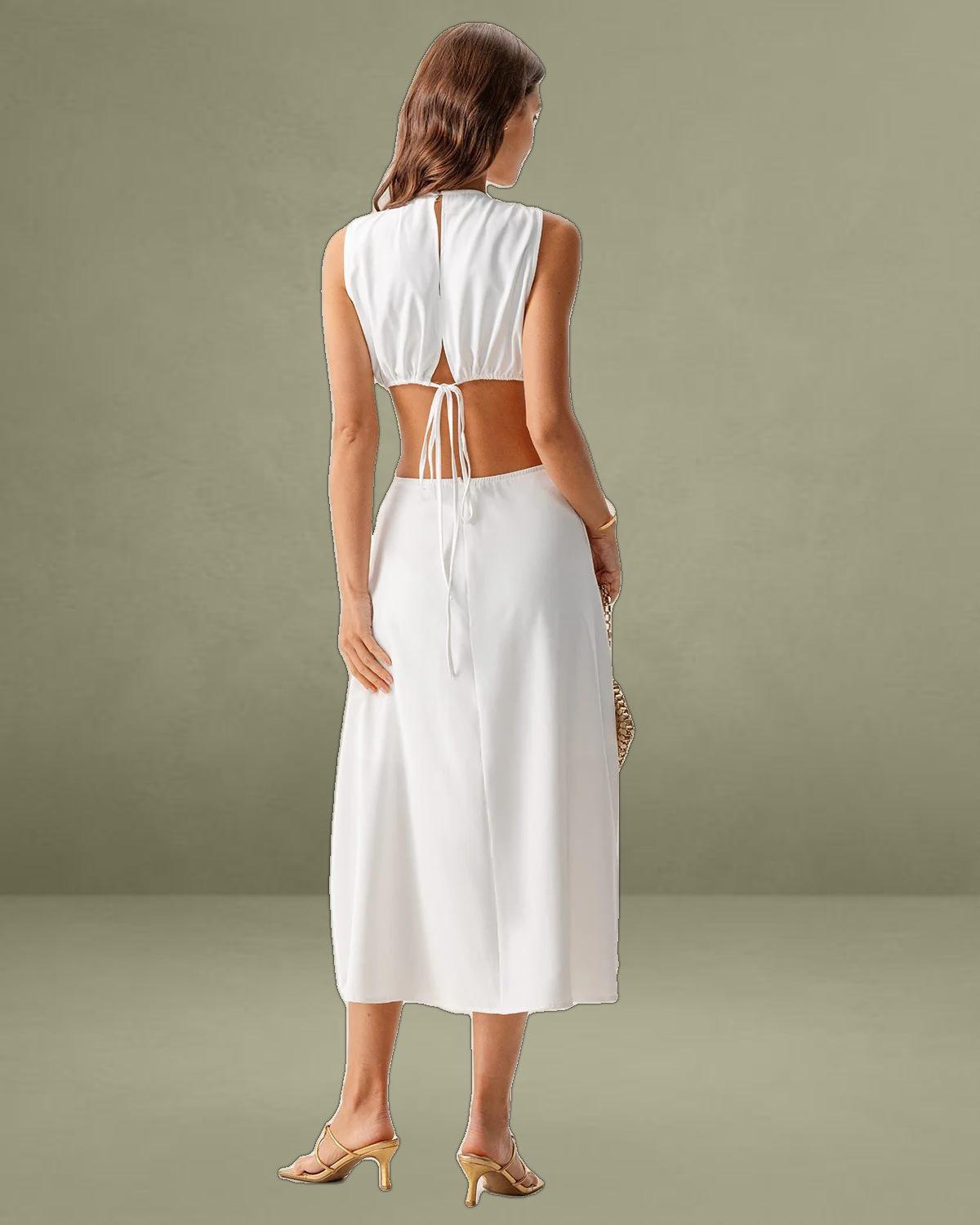 This Cutout Midi Dress is made of Polyester, a man-made fiber that is soft, lustrous, and dries fast. It's also durable, with its good resistance to wrinkles, stains, and sunlight.