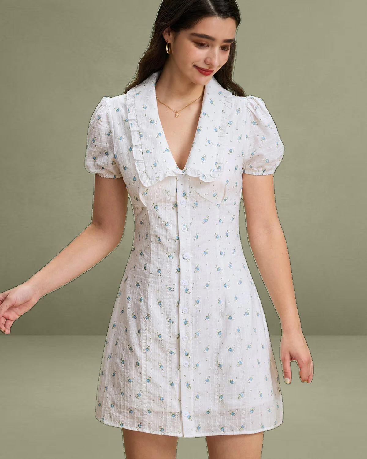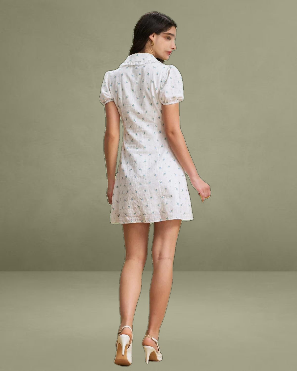 Featuring a soft white base adorned with delicate floral prints, this mini dress is perfect for spring outings, garden parties, or casual daytime events. Its flattering silhouette, puff sleeves, and subtle ruffle details create a romantic, feminine look. Made from lightweight, breathable fabric, it offers both comfort and chic appeal.