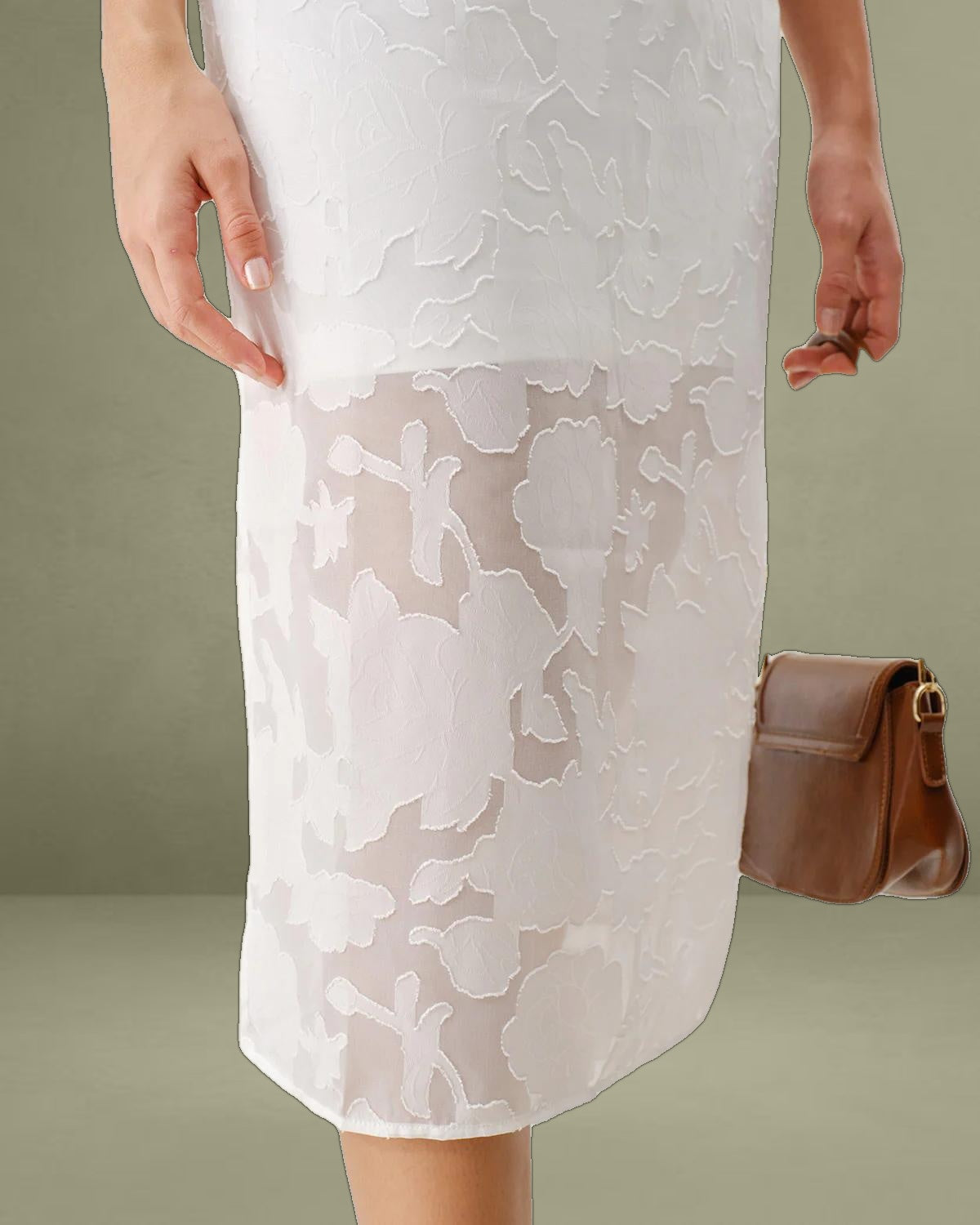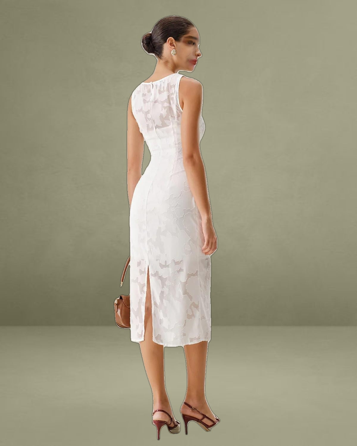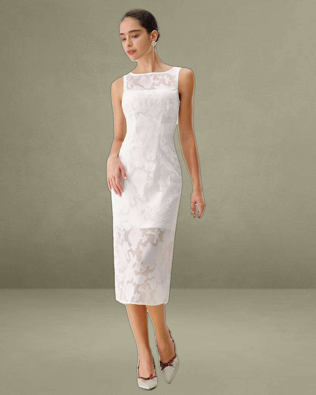 Exude grace and sophistication in our White Lace Boat Neck Midi Dress. Designed with a delicate lace overlay and an elegant boat neckline, this midi dress offers a timeless silhouette perfect for bridal showers, romantic dinners, or formal gatherings. A refined choice for any special occasion.