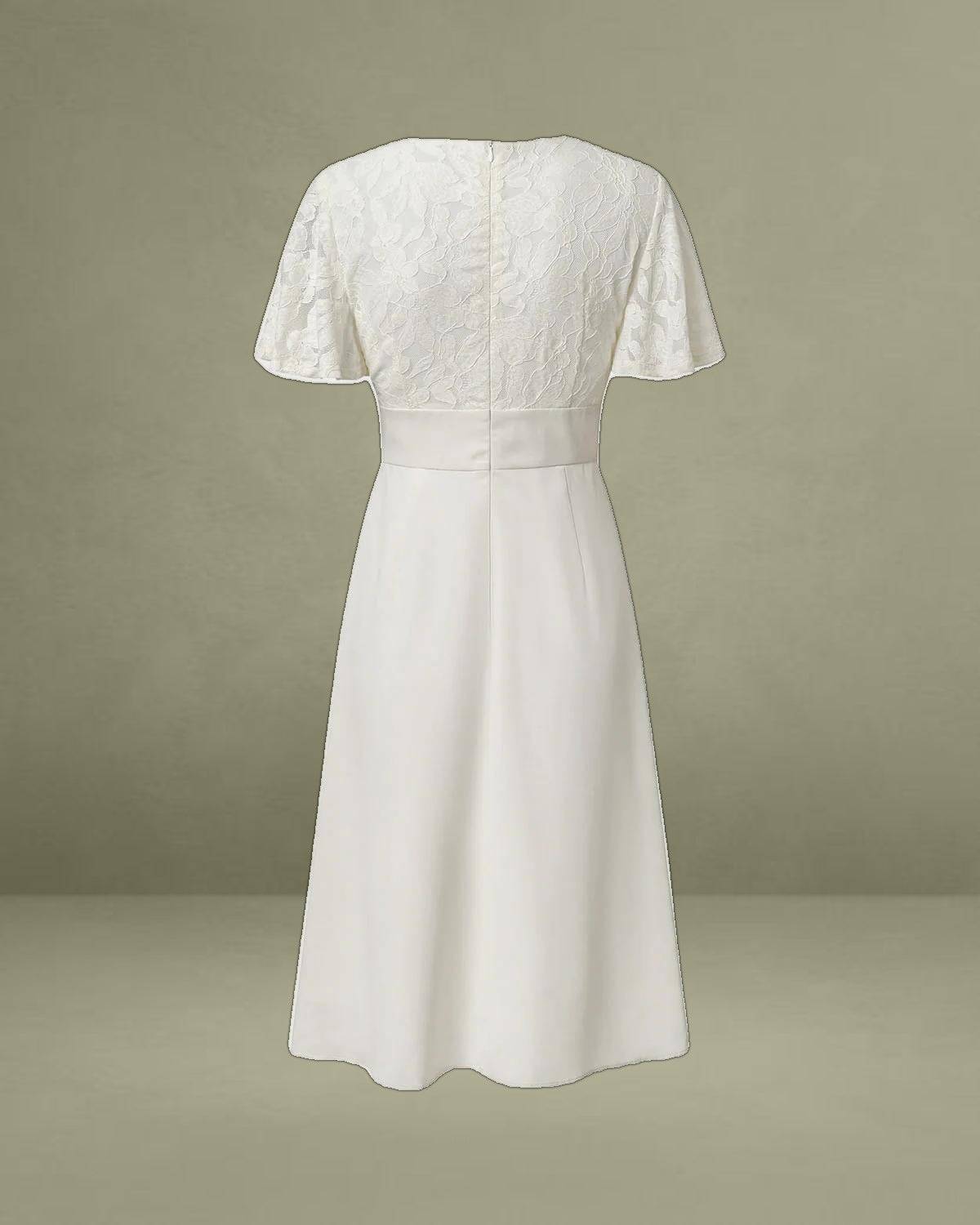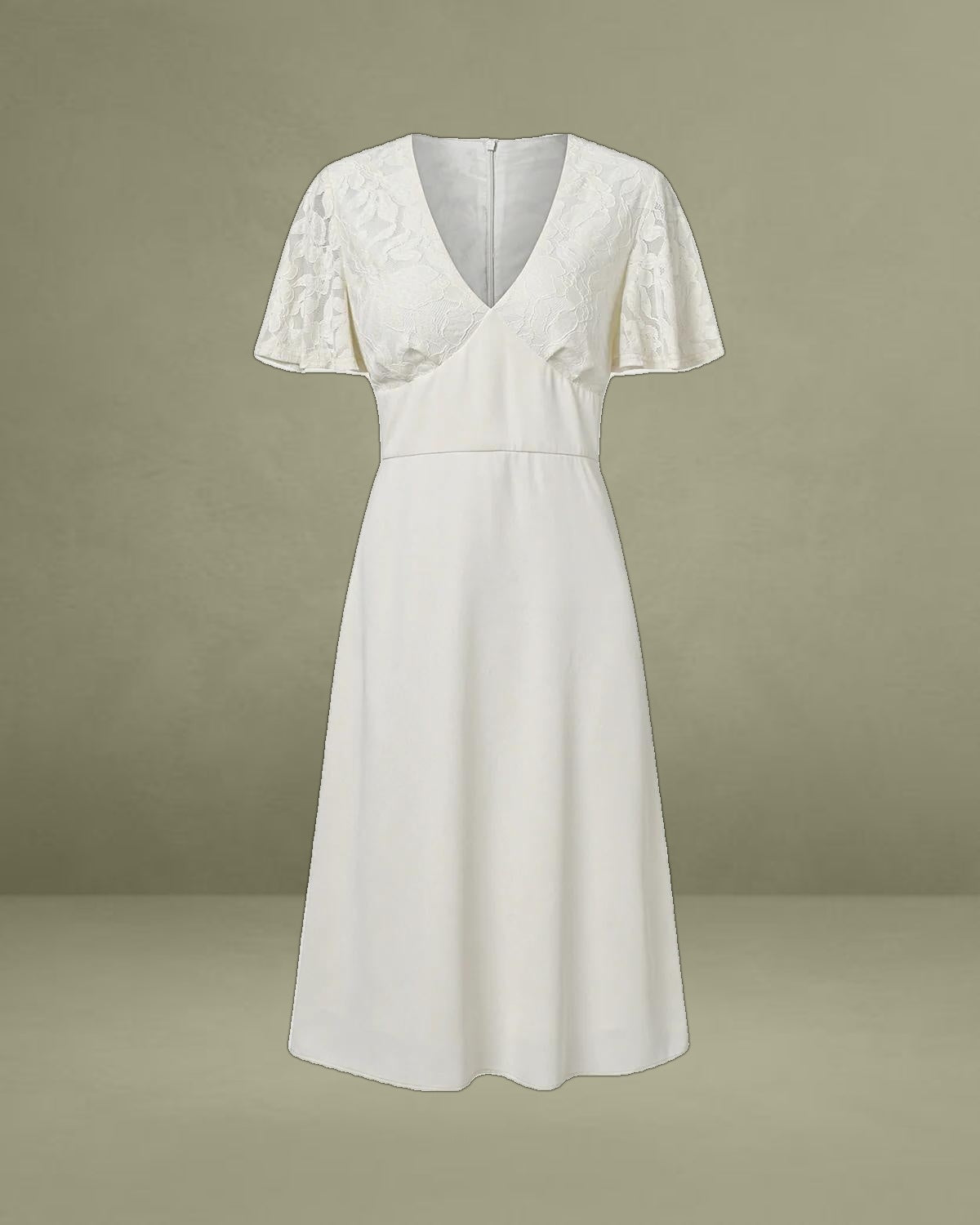 This V-Neck Midi Dress is made of Polyester. Polyester is an artificial fiber that feels soft, looks lustrous, and dries fast. It's also durable, with good resistance to wrinkles, stains, and sunlight.