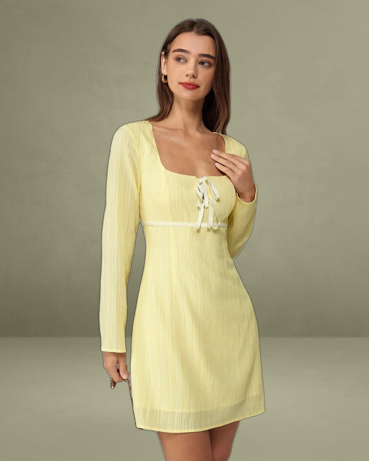 - Embellishment: Cut Out, Tie, Textured